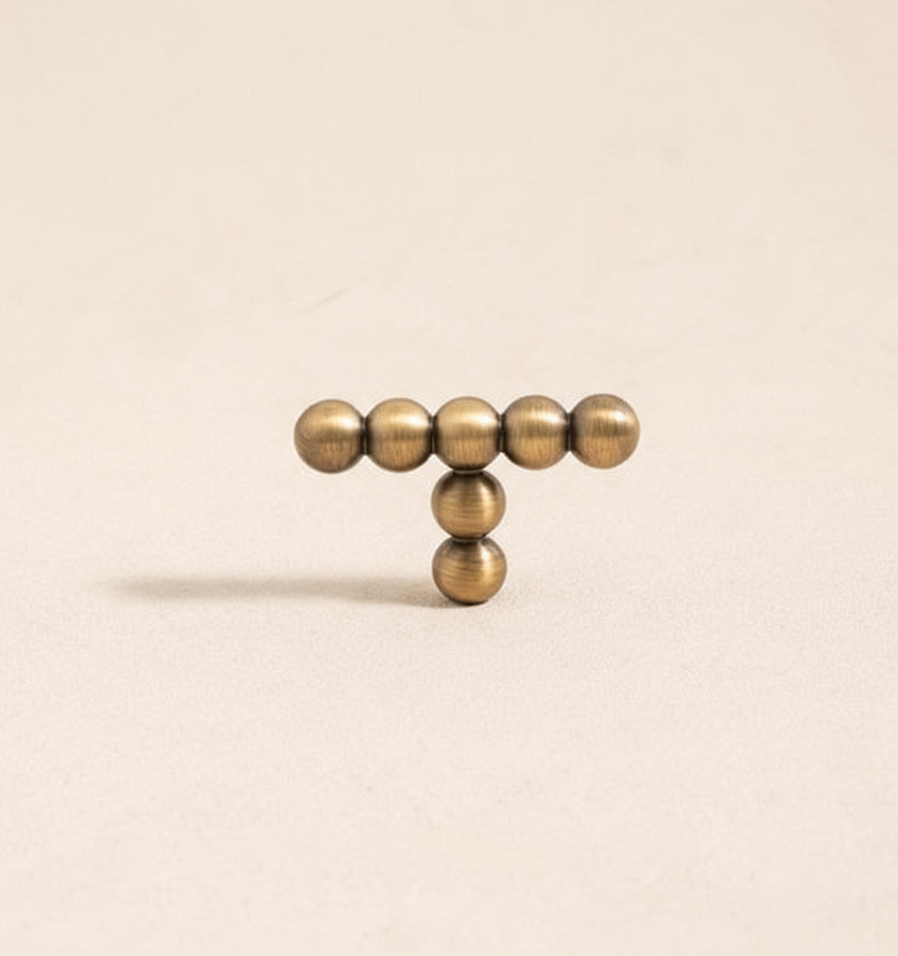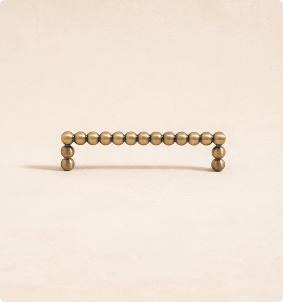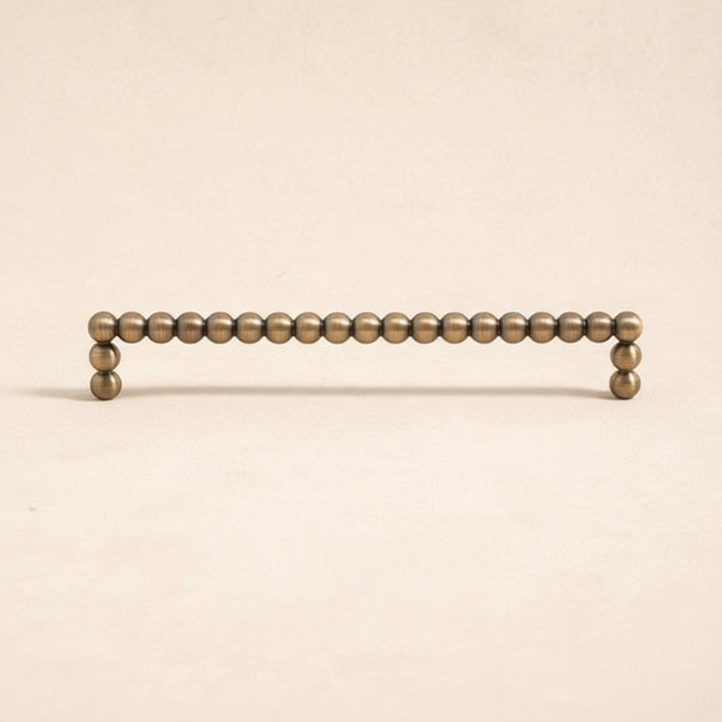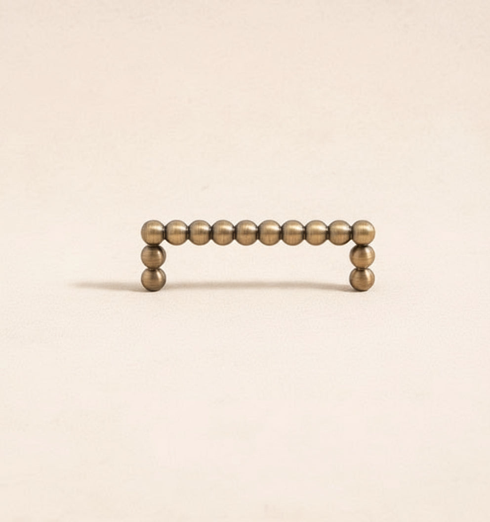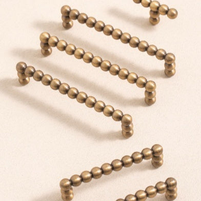 Trendigt draghandtag med bubbliga former i solid mässing med modern touch. Passar utmärkt till kök och badrum såväl som till byrå. Kommer i utförande mässing, krom eller brons.