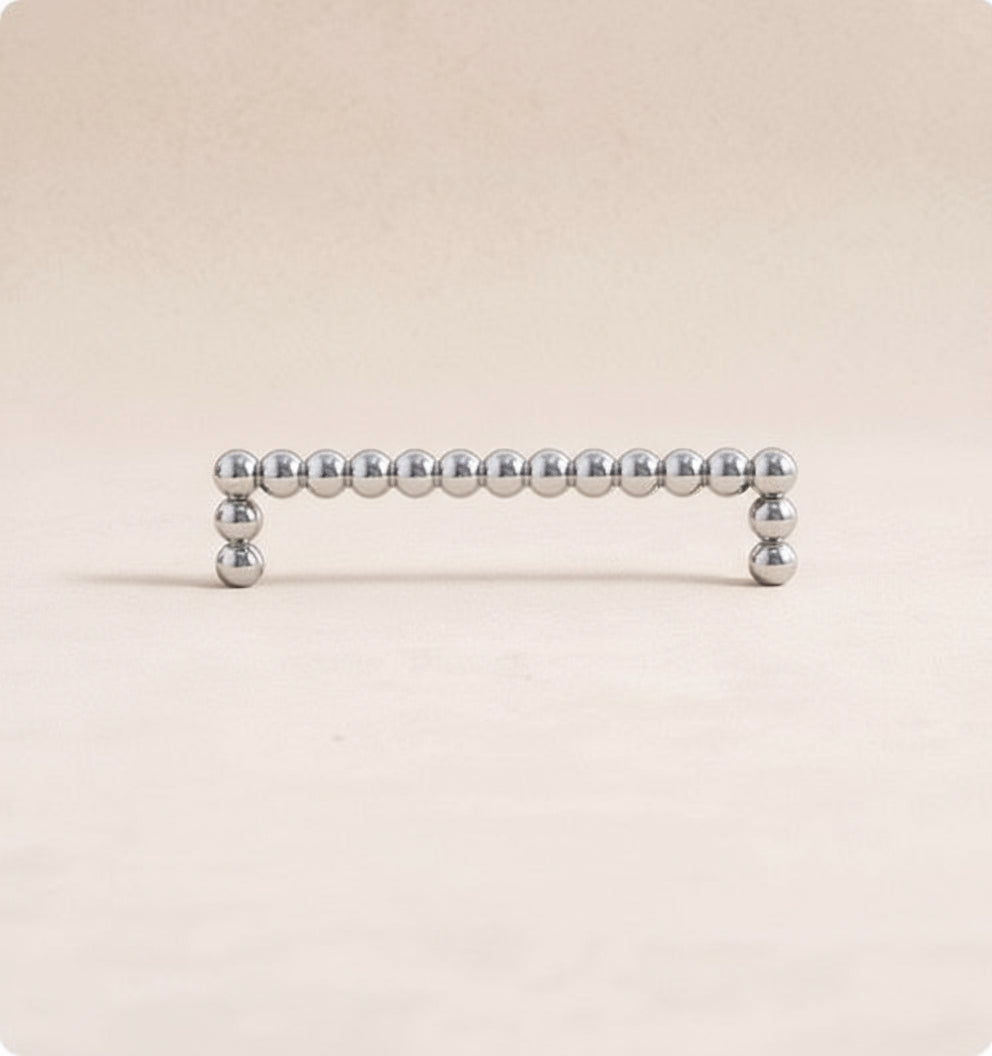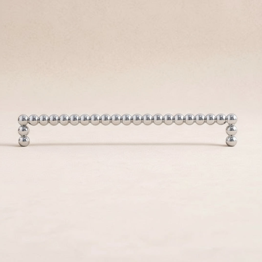 Trendigt draghandtag i solid mässing med modern touch. Passar utmärkt till kök och badrum såväl som till byrå. Kommer i utförande mässing, krom eller brons.