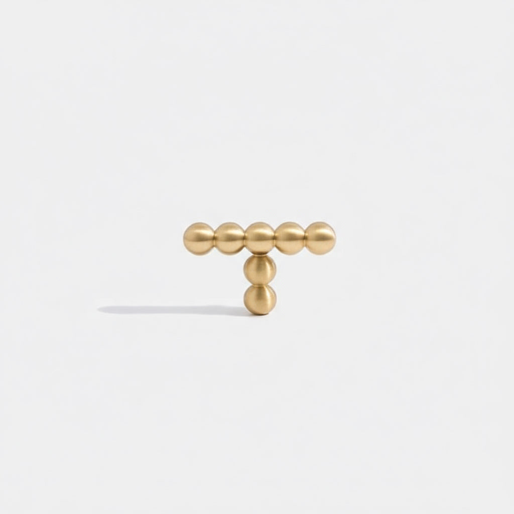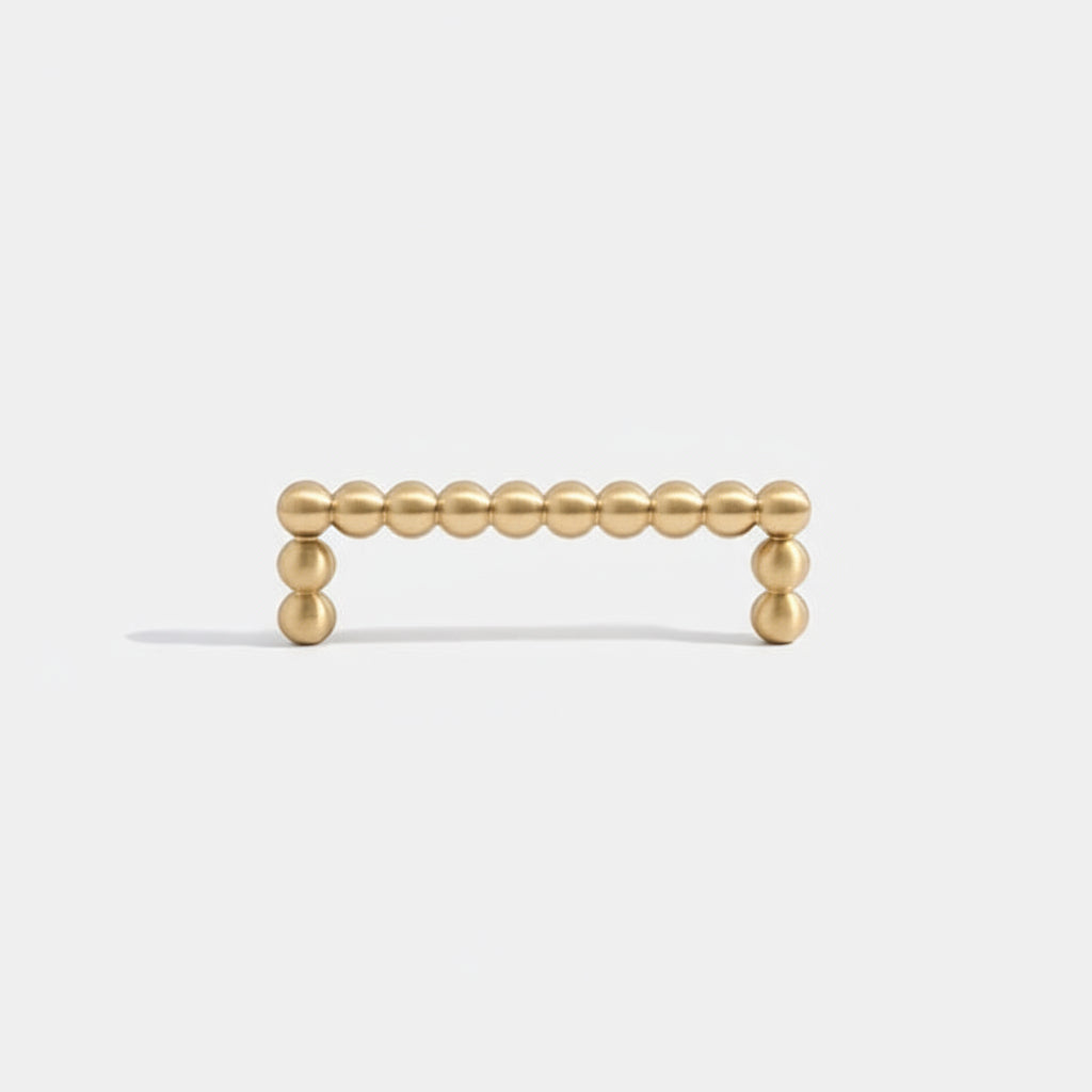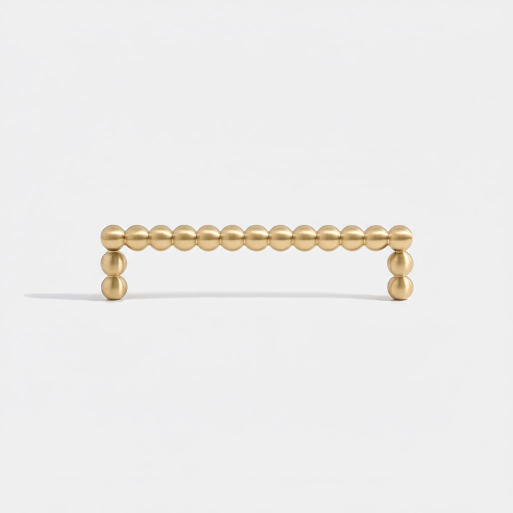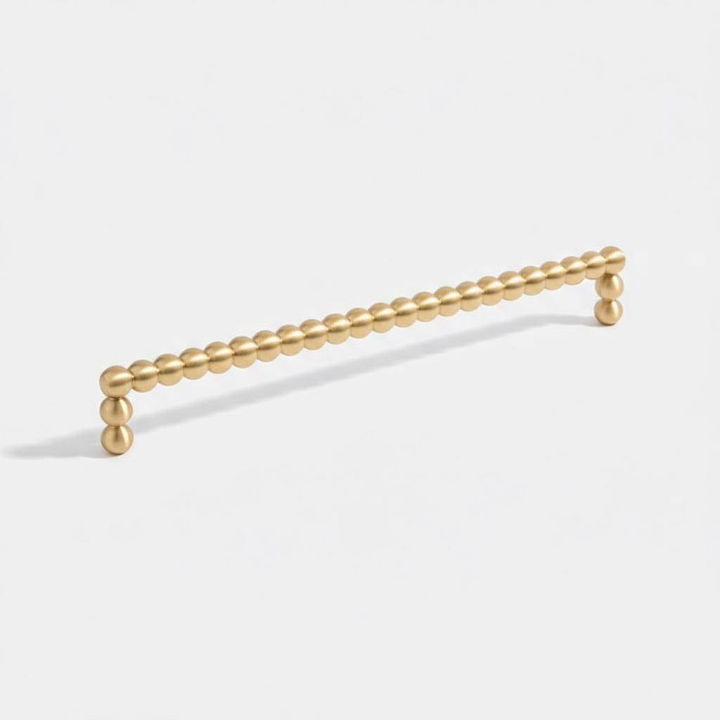 Trendigt draghandtag i solid mässing med modern touch. Passar utmärkt till kök och badrum såväl som till byrå. Kommer i utförande mässing, krom eller brons.