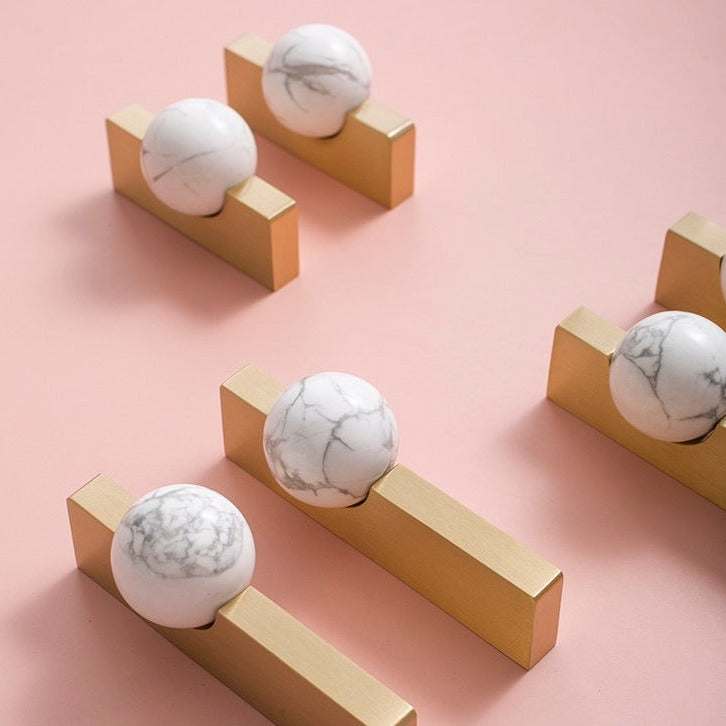 Stylish brass handle with round stone. Comes in several different sizes and designs. Fits nicely on wardrobes and chests of drawers.