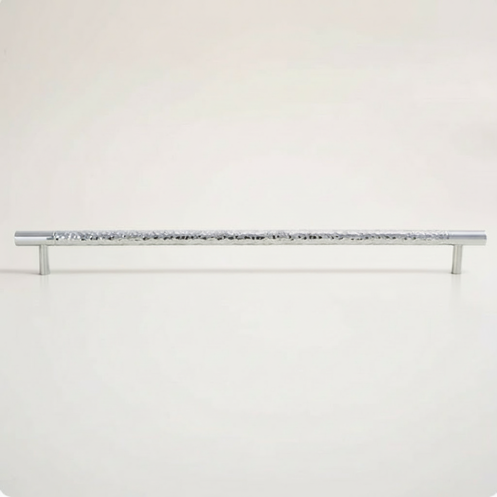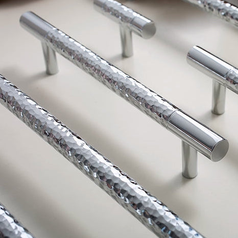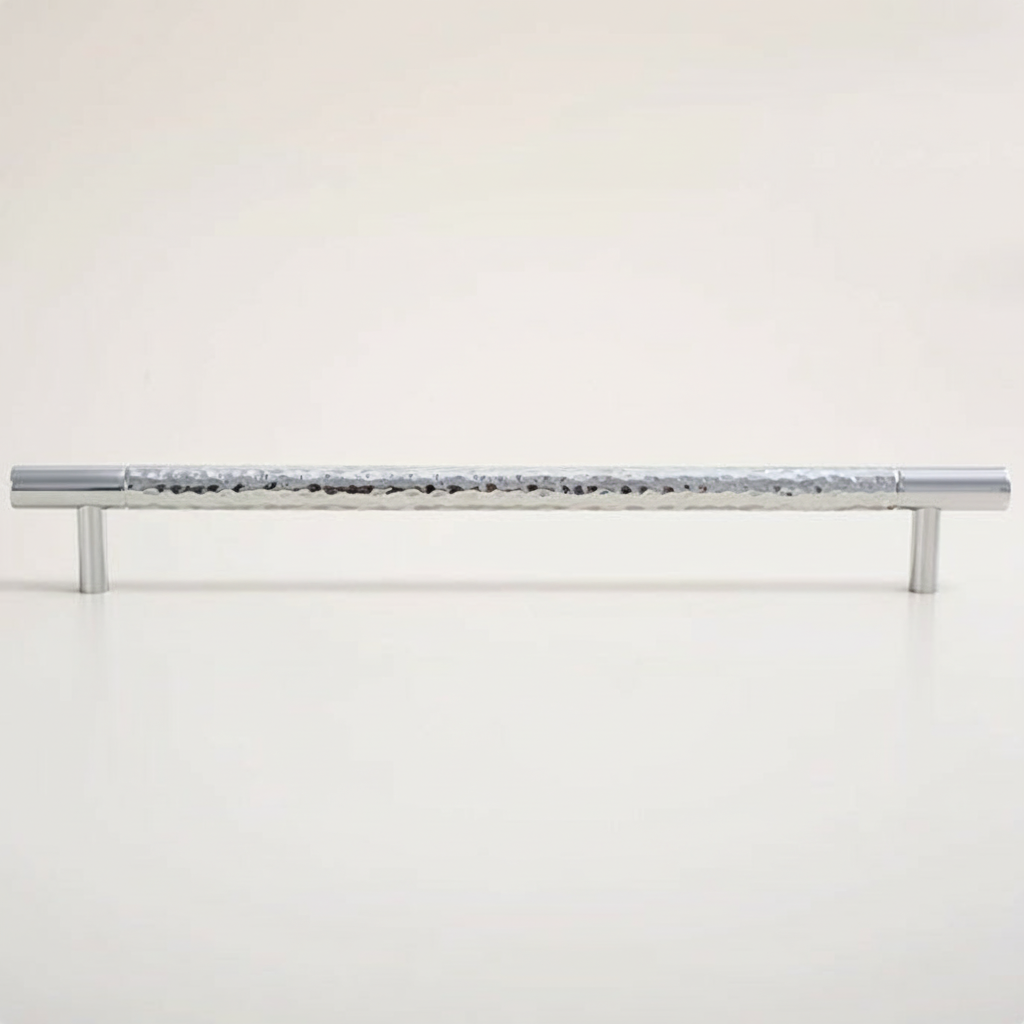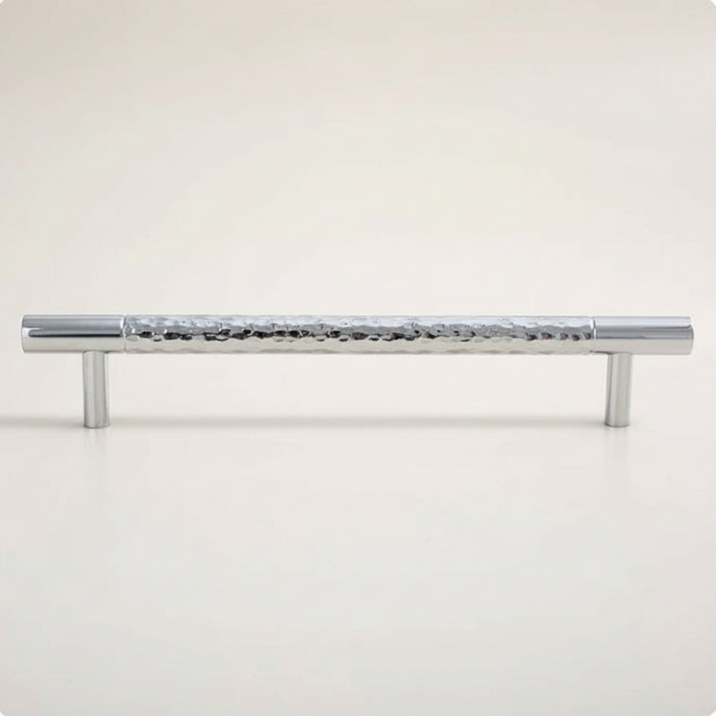 Stilfull serie i med mittendel av hamrad krom och kant av polerad krom.