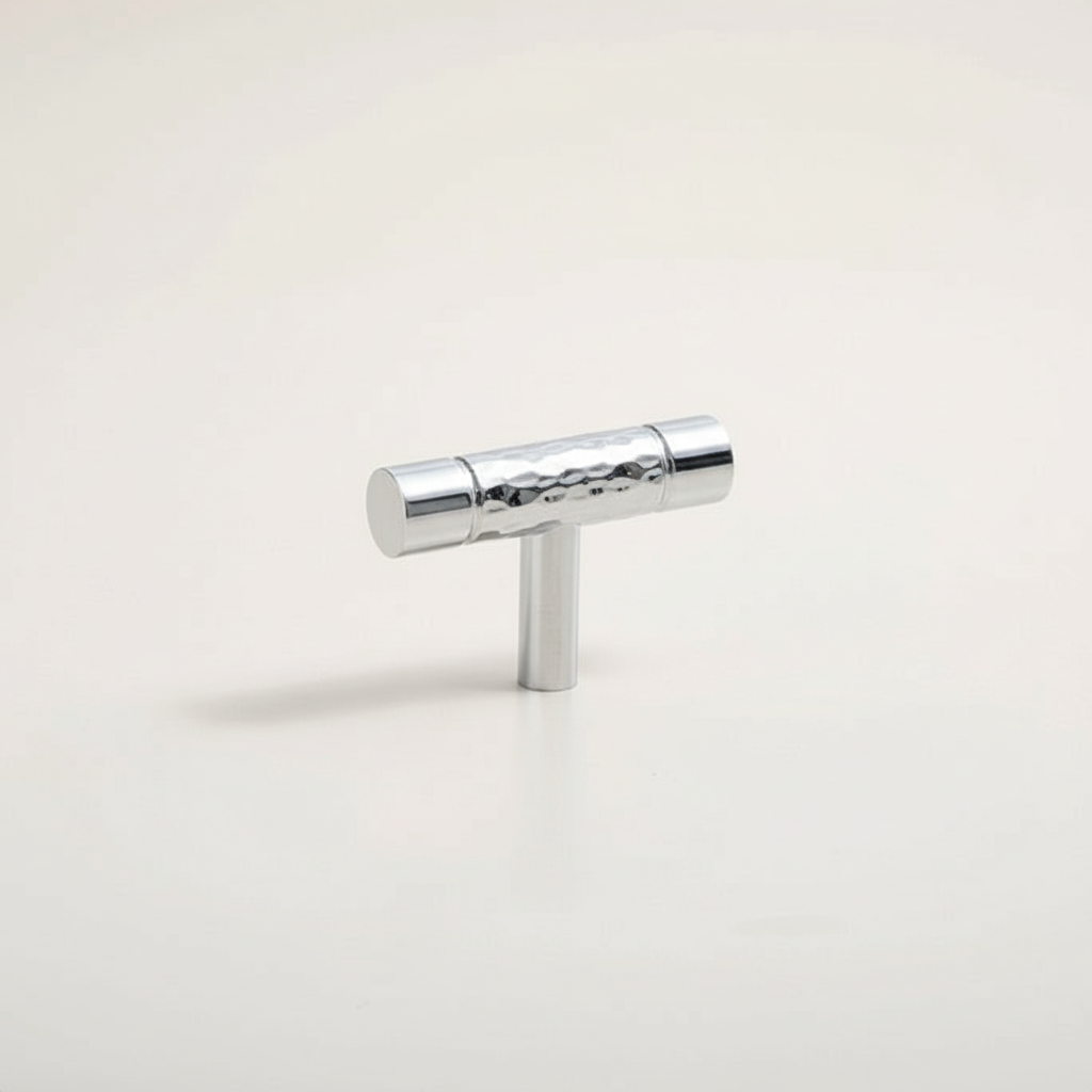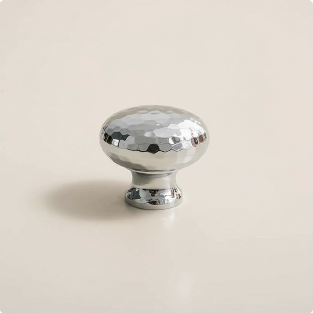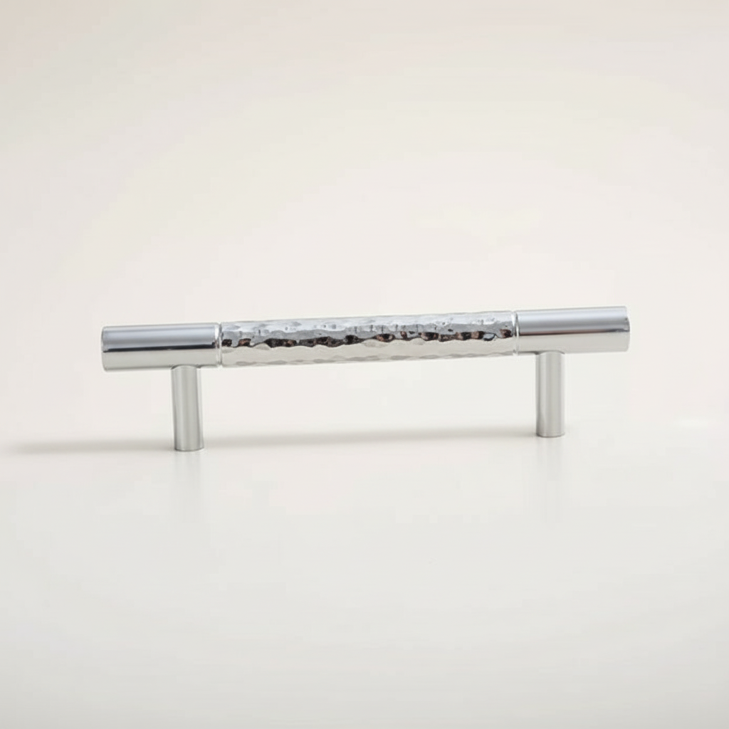 Stilfull serie i med mittendel av hamrad krom och kant av polerad krom.